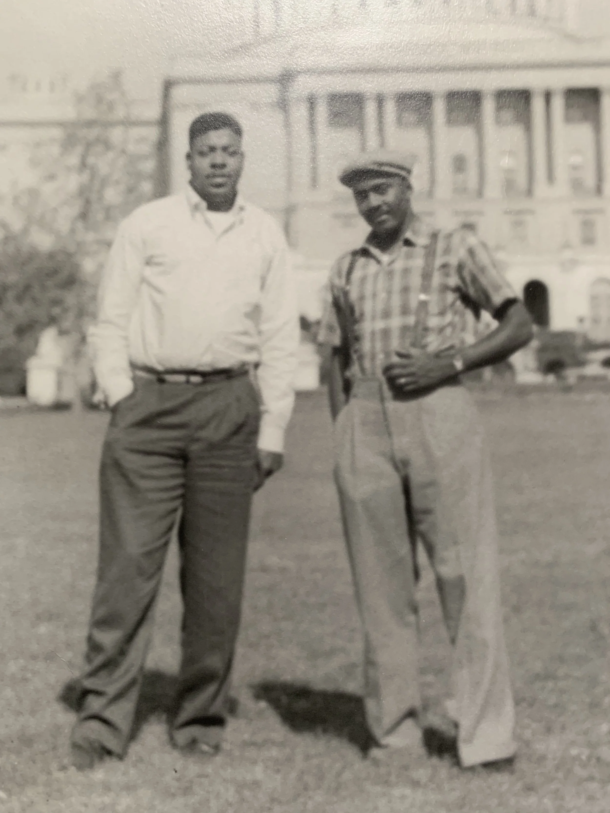 Our principal Erika’s great-grandfather, Rufus (right), out on the lawns with a friend in Washington, DC (circa 1960s).